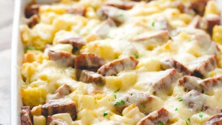 Apple, Cheddar and Sausage Breakfast Strata is the perfect holiday morning breakfast. It is an unforgettable savory and sweet make-ahead breakfast casserole. You’re going to love it!!