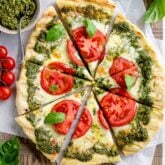 The key is to have your workstation set up next to you before you start grilling as this grilled pizza recipe goes quickly! Also, managing the temperature on the grill is vital to avoiding a burnt bottom but melting the cheese. It’s important to have the grill hot (direct heat) on one side and off (indirect heat) on the other. And once the crust is flipped, move it to the off side for carry-over cooking to control the heat and avoid burning the crust before the cheese is melted.