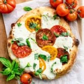 Pro Tip: Go easy on the volume of toppings. In this case, less is more! Use your best judgment, but this grilled pizza recipe needs fewer toppings than you think. If you overload the pizza, there’s potential for a soggy pizza pie which no one wants!