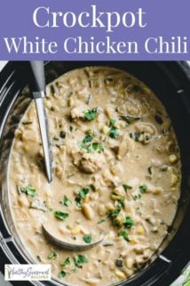 - Less Saturated Fat: Many white chicken chilis call for a lot of cream or cream cheese. This version only has 1/2 cup of cream, so it has only 7 grams of saturated fat per serving.
